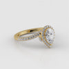 The Elegant Pear Swirl Halo Engagement Ring is a breathtaking symbol of love and commitment. Crafted from elegant 14k white gold, it features a dazzling 1-carat pear diamond as the centerpiece, surrounded by a solid white gold ring setting containing 0.38 round cut diamonds. The ring is VS2 clarity and F/G color, this ring radiates brilliance and sophistication, making it the perfect choice to celebrate your love and begin your journey together.